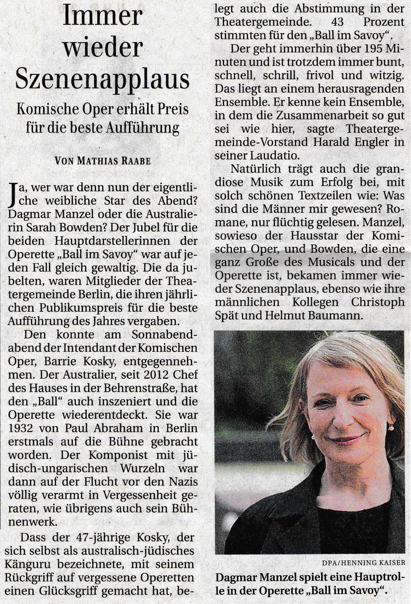 Ja, wer war denn nun der eigentliche weibliche Star des Abends? Dagmar Manzel oder die Australierin Sarah Bowden?