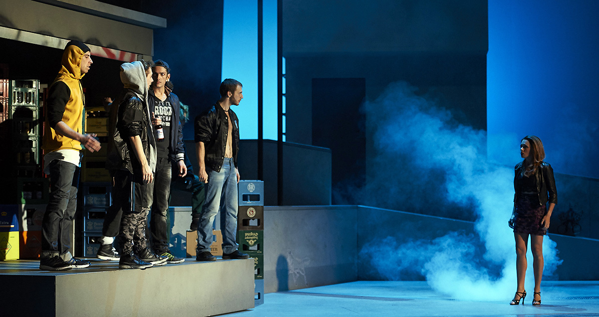 Die Geschichte der rivalisierenden Jugendgangs Jets und Sharks verlagert die Thematik von „Romeo und Julia“ in das New York der 50er Jahre. Die gefragte Musiktheaterregisseurin Katja Wolff inszeniert die Ereignisse rund um unglückliche Liebe von Tony und Maria nun für die Wuppertaler Bühnen mit aktuellen Bezügen zu sozialen Brennpunkten unserer Zeit und Region.